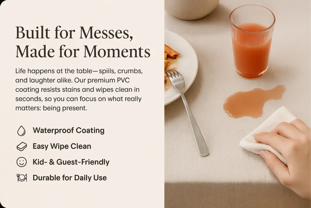 Spill-Proof | Easy-Clean | Stylishly Durable – The Perfect Table Companion